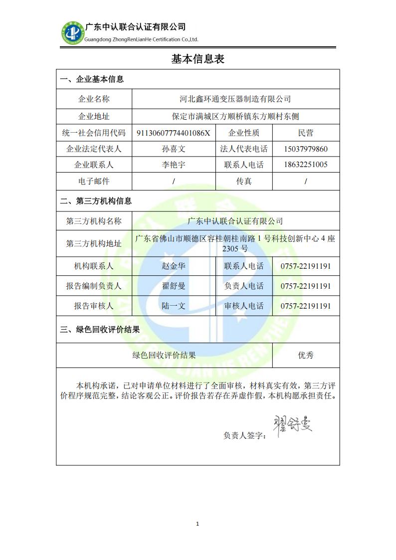 河北鑫環(huán)通變壓器制造有限公司-綠色回收報告(2)